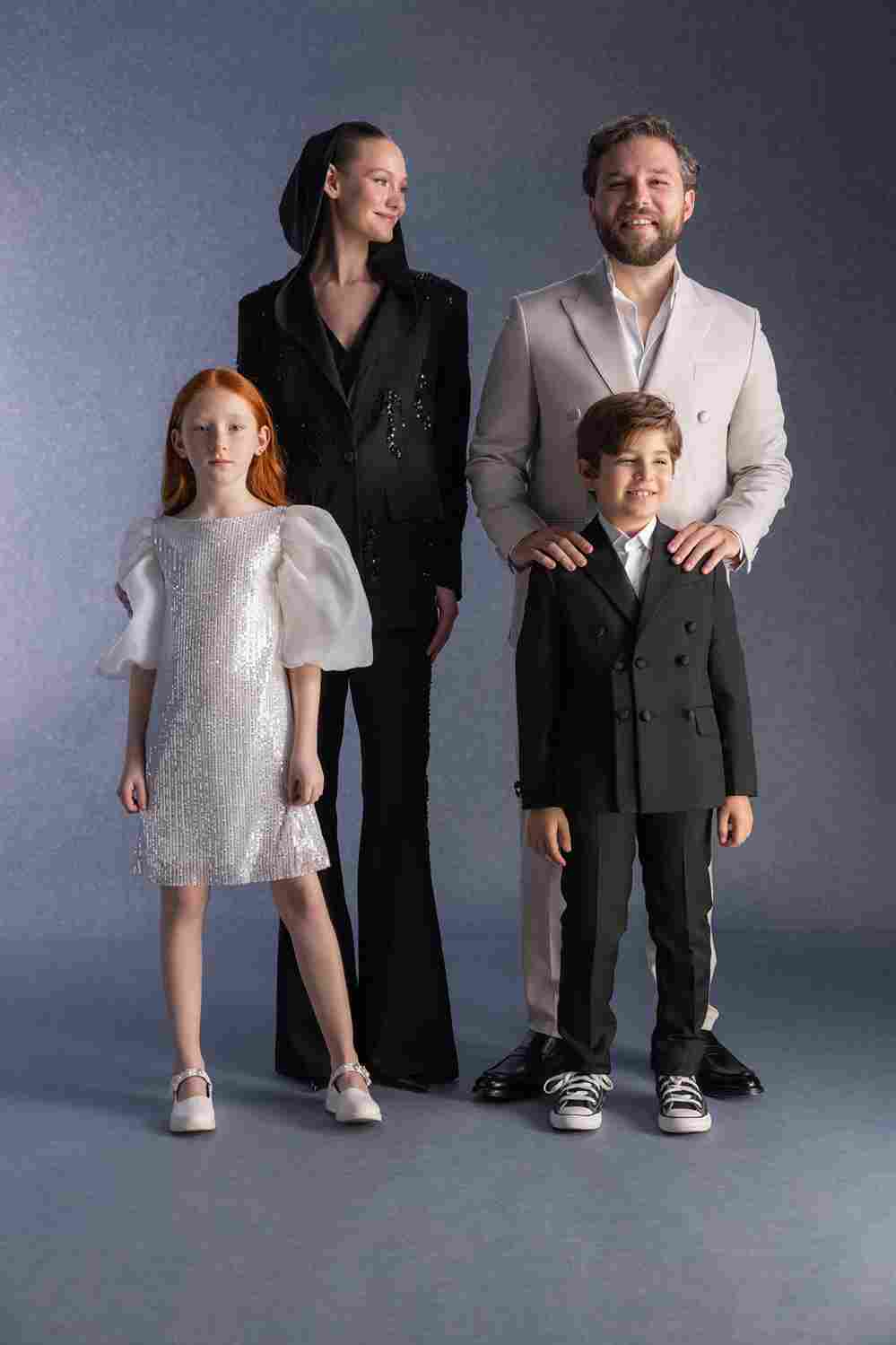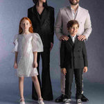Discover the Caelum Silenti collection, where dramatic elegance meets refined classiness. Featuring black and taupe hues, these sophisticated outfits are designed to bring timeless charm and cohesive style to the entire family.