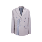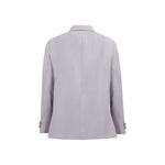 A luxurious double-layered wool dubetti jacket, with the bottom layer made from high-end satin for a refined finish. The jacket is accented with satinated buttons, adding a touch of elegance to its design. Paired with classic French trousers, this sophisticated suit is available in both black and taupe, offering versatile and timeless style.