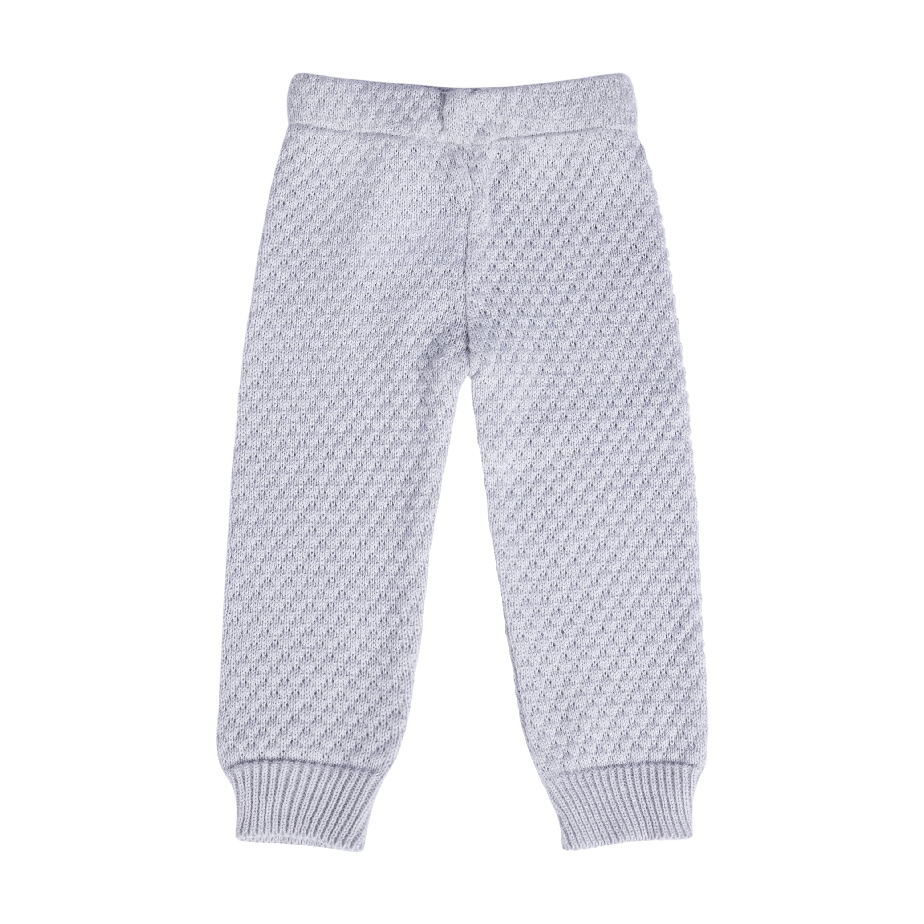 Pants featuring a knitted pattern detailing, designed for infants in a unisex style. These comfortable and stylish pants offer both warmth and flexibility, making them perfect for little ones on the move.