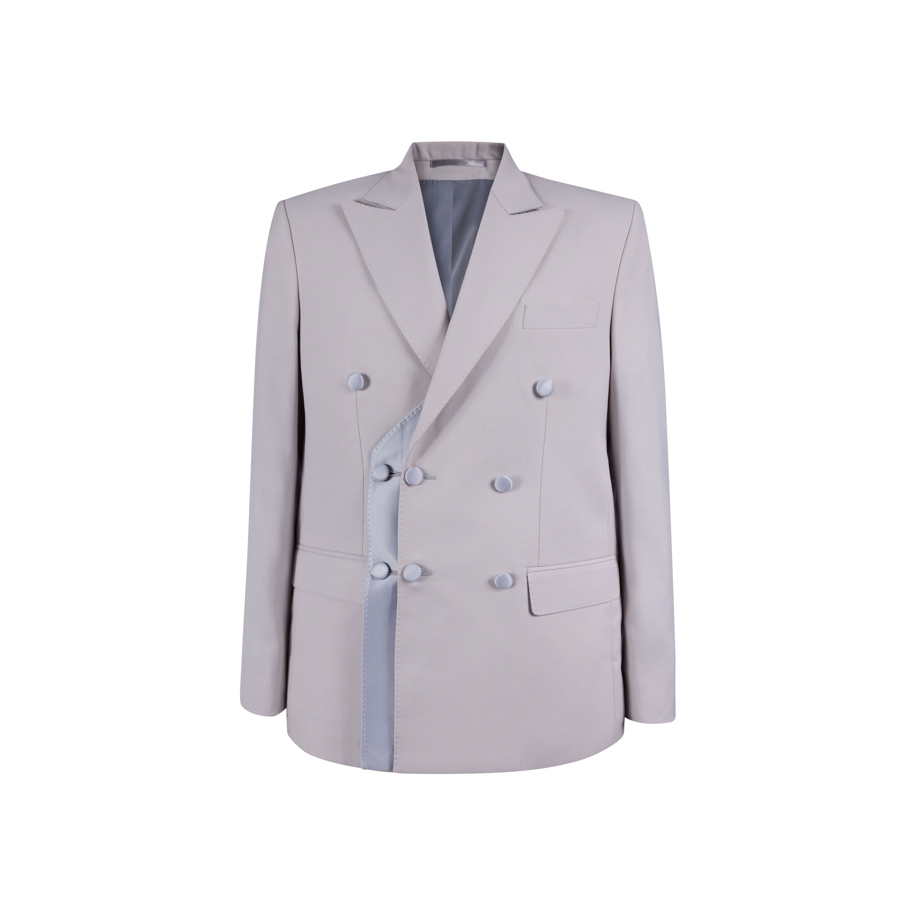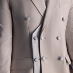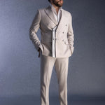 Elevate your wardrobe with this double-layered wool dubetti jacket, featuring a sleek satin bottom layer and refined satin button detailing. Paired with tailored French trousers, this elegant suit offers timeless sophistication. Available in classic black and versatile taupe, it’s the perfect blend of luxury and style for any occasion.