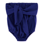 Welcome your little one with the adorable Future Dusk newborn girl jumpsuit. This navy linen baby jumpsuit from the Future Dusk collection features charming ribbon detailing, ensuring both comfort and style for your baby girl.