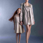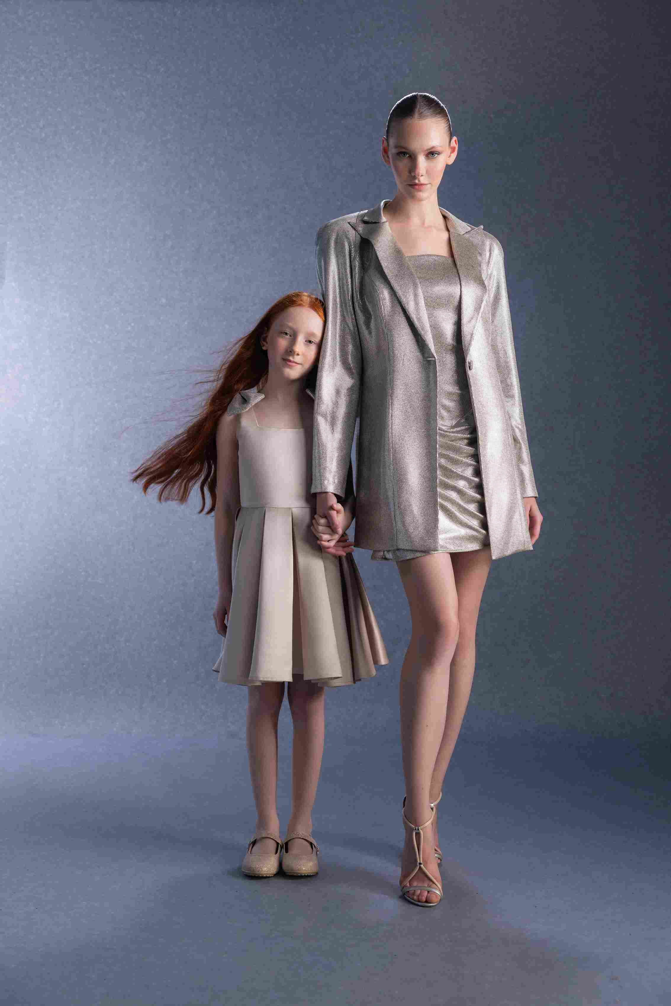 Experience the radiance of the Siderum Gloria collection, where modern mothers and daughters dazzle in matching metallic ensembles. This collection combines edgy elegance with sharp femininity, creating striking fashion statements that embody the spirit of contemporary sophistication.