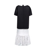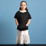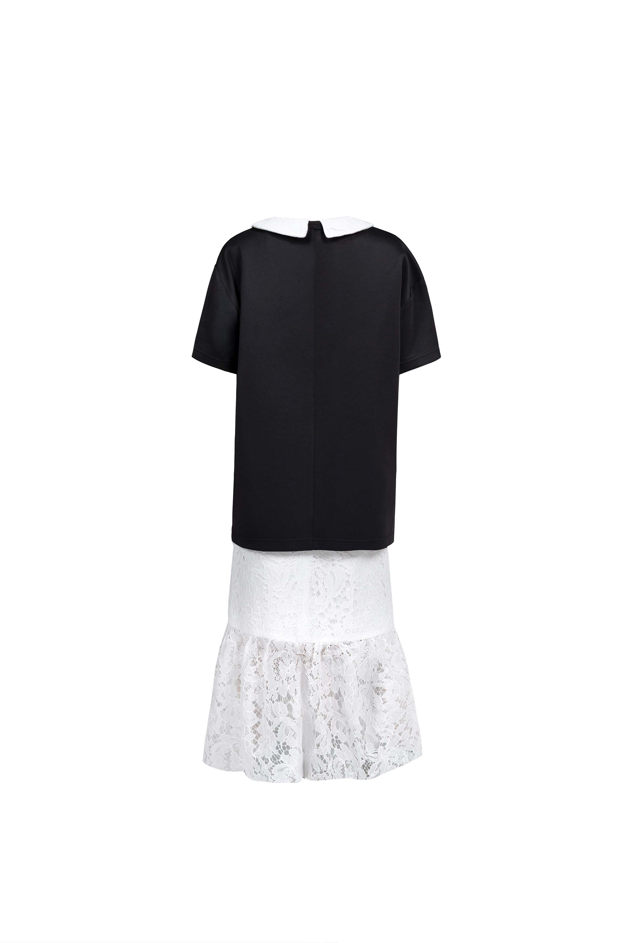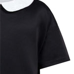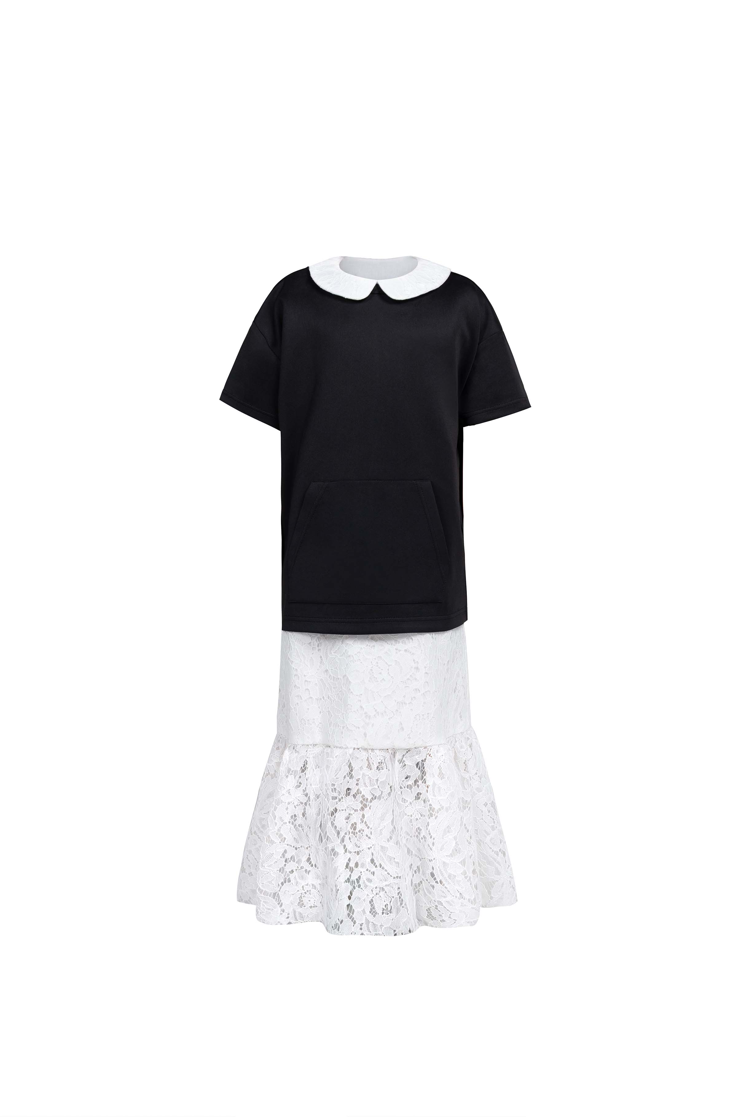 Oversized neoprene top with short sleeves. Front pocket detailing.