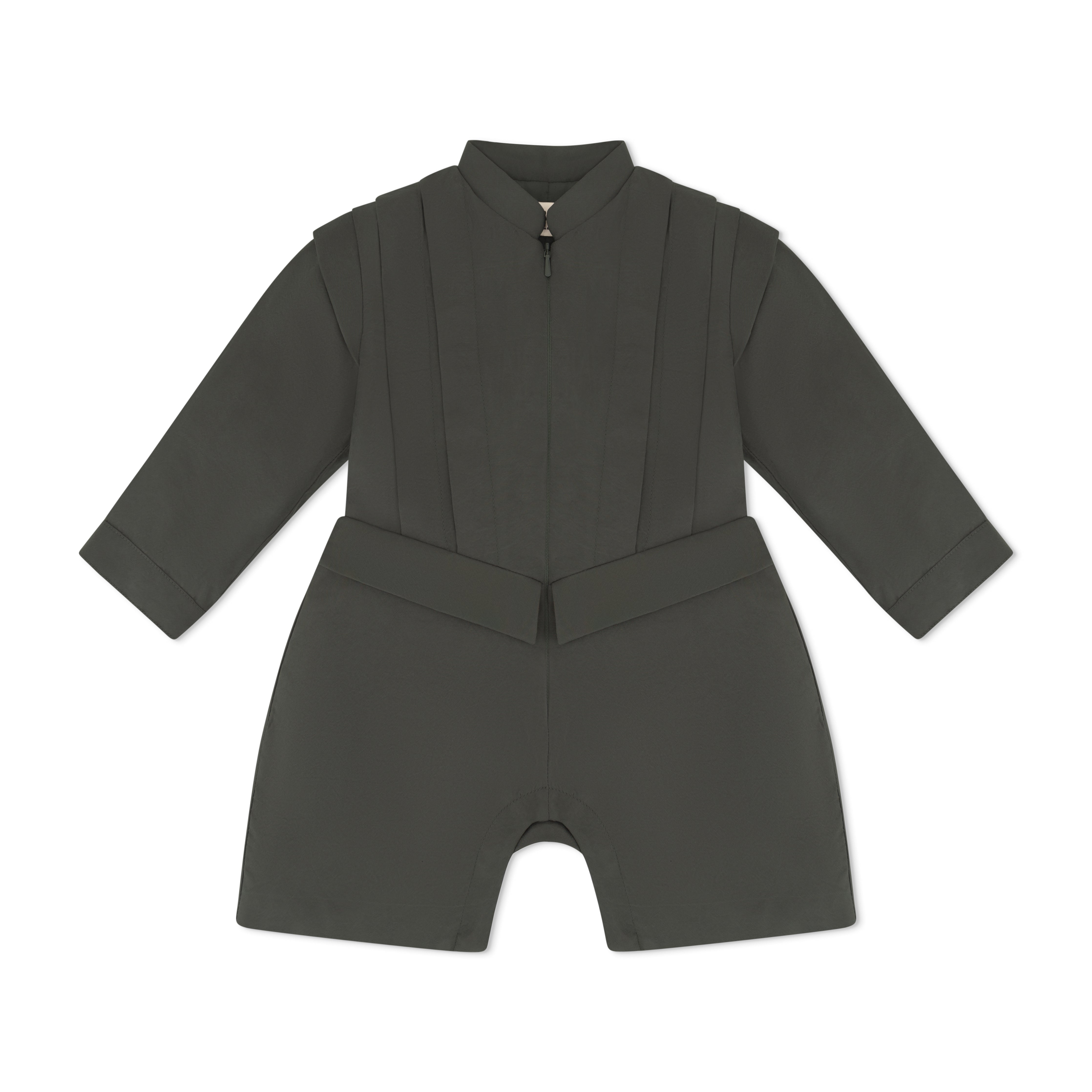 Introduce your little one to refined style with this pleated blazer cut jumpsuit from the Ivory Ash collection. In a stylish grey hue, this baby boys' jumpsuit combines the elegance of a blazer with the practicality of a jumpsuit, perfect for special occasions or dressy everyday wear.
