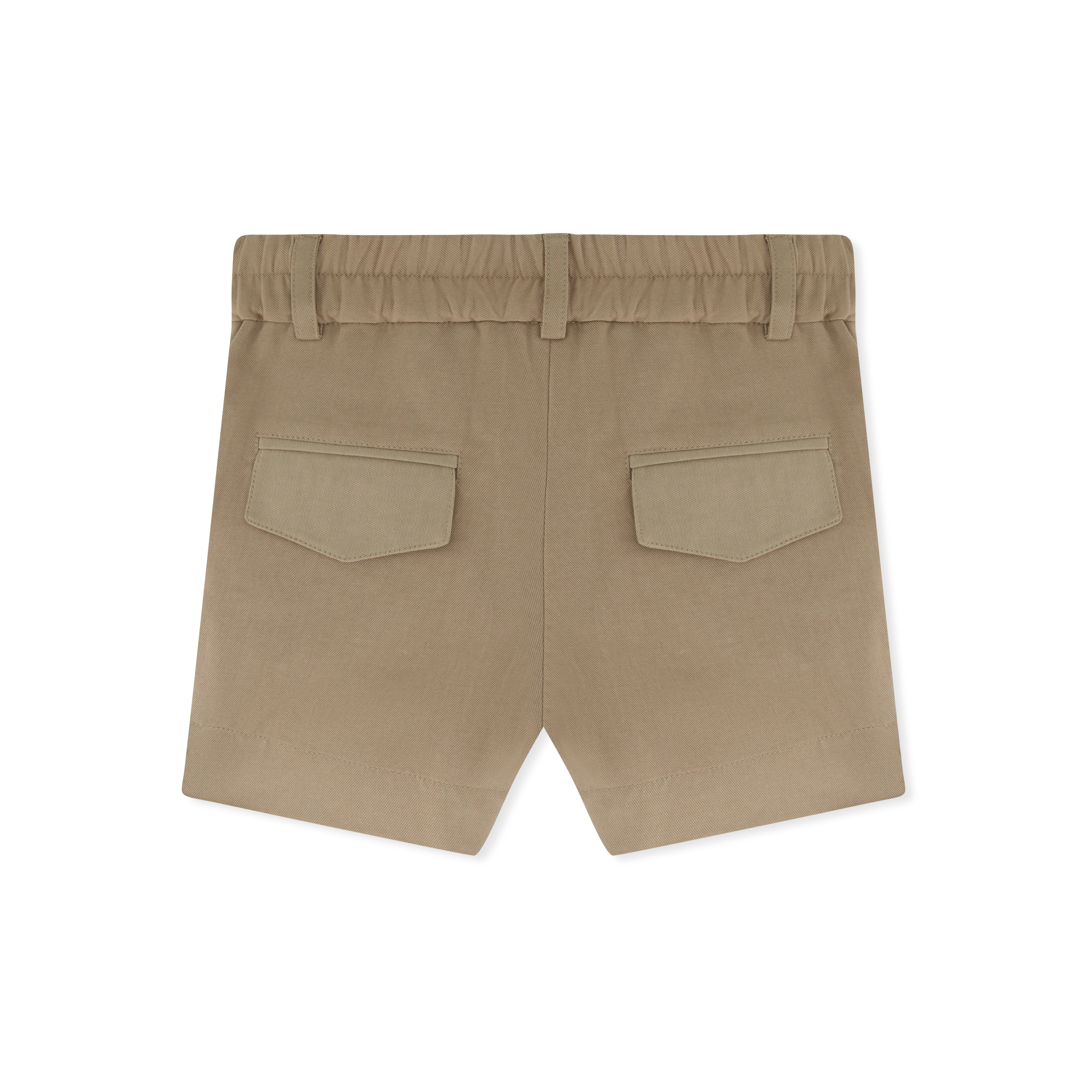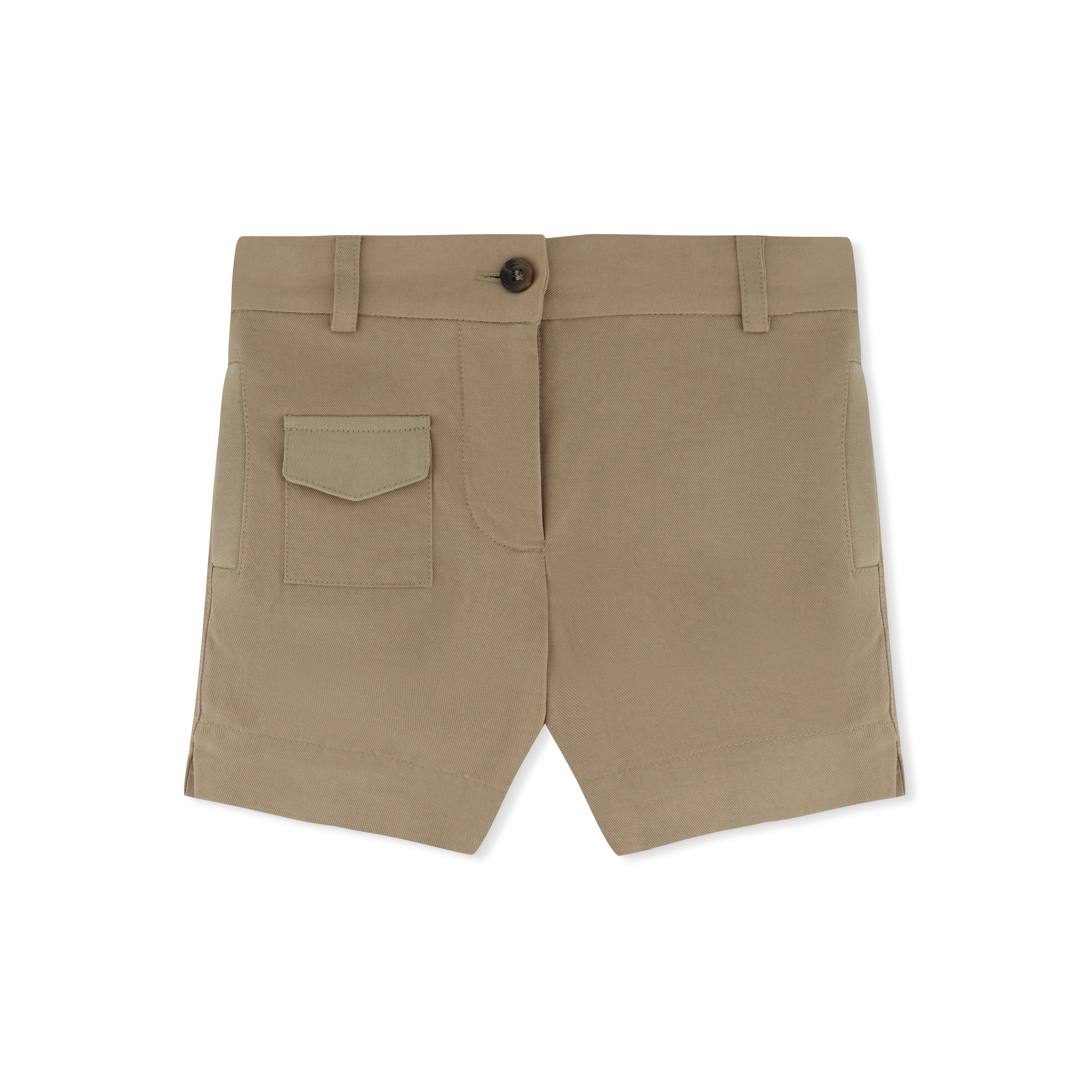 Dress your little girl in comfort and style with these sand-colored cargo shorts from the Mocha Marvel collection. Made from a blend of 60% Tencel and 40% Cotton, they offer a soft and breathable feel, perfect for warm weather adventures.