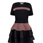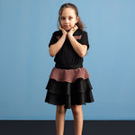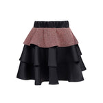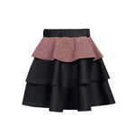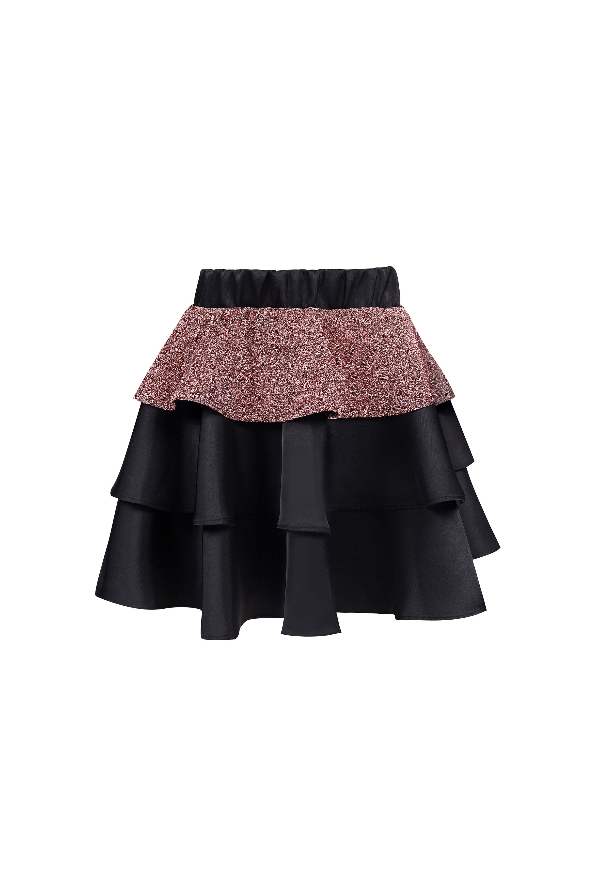 Satin ruffled skirt with elasticated waistband adorned with shimmering ruffle.