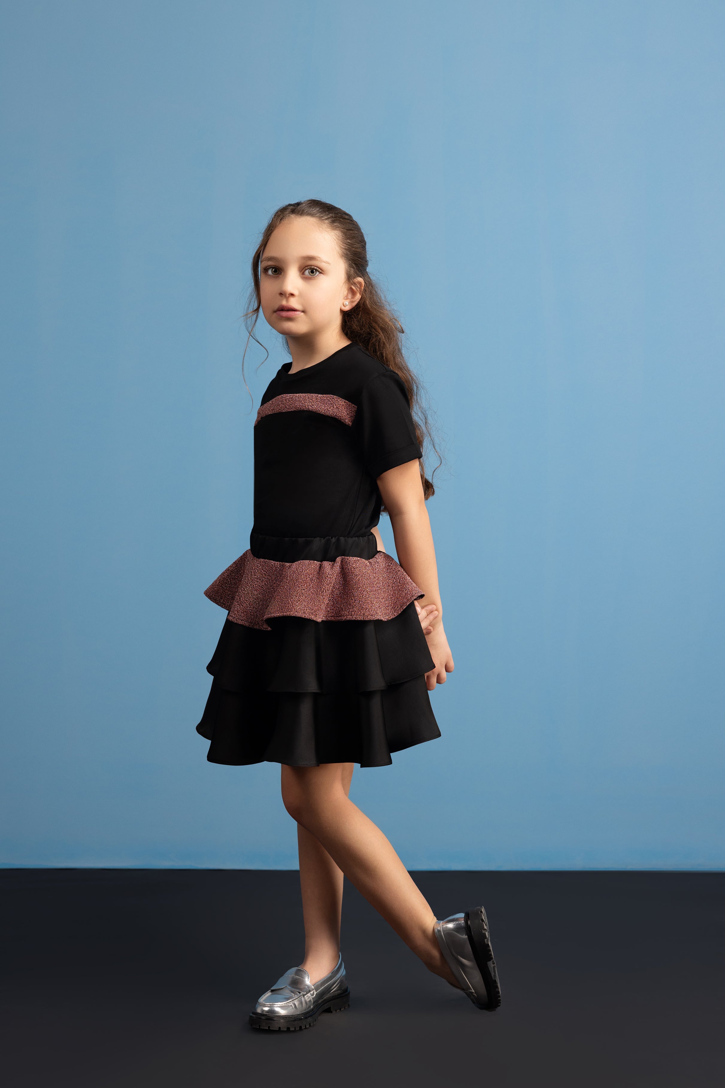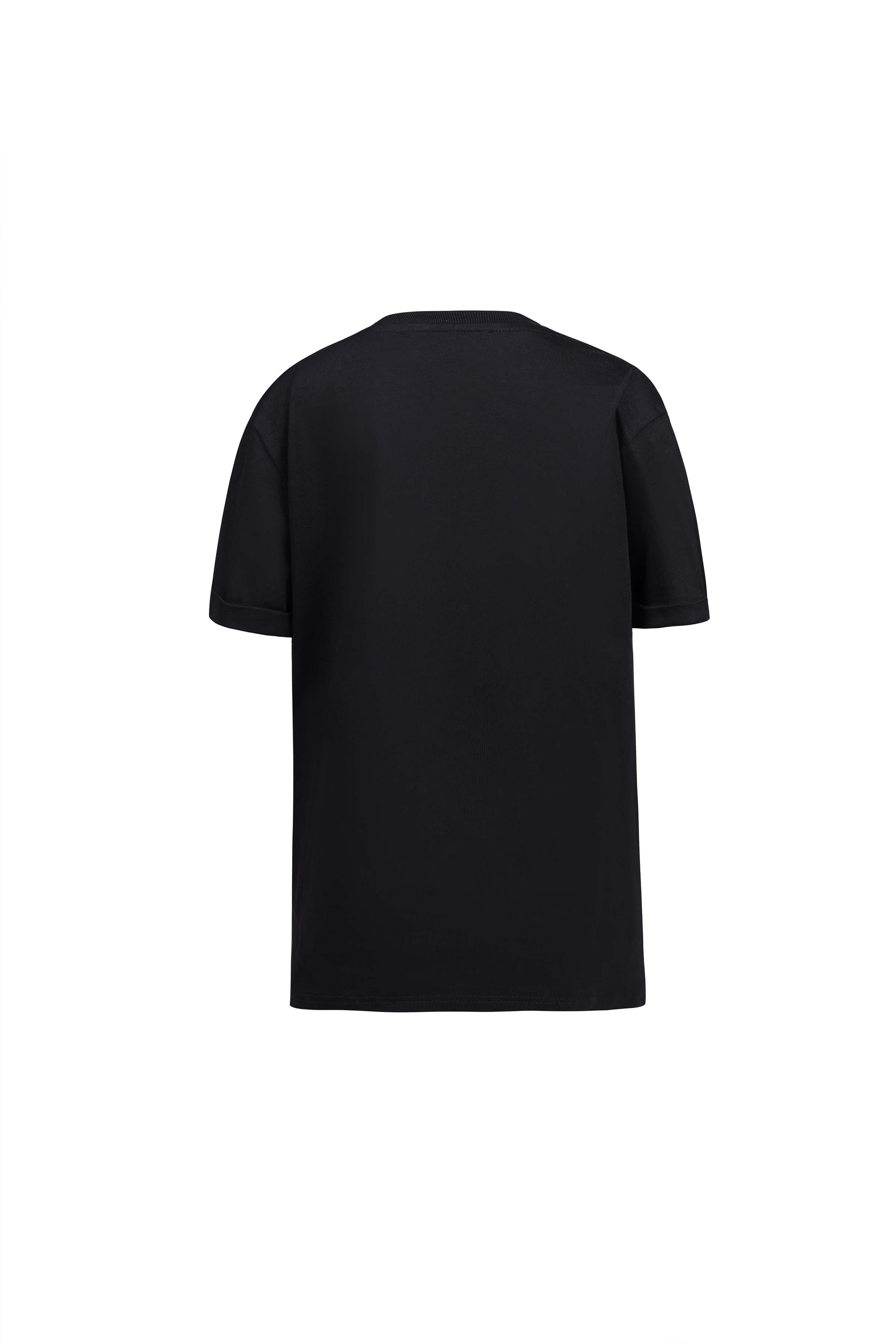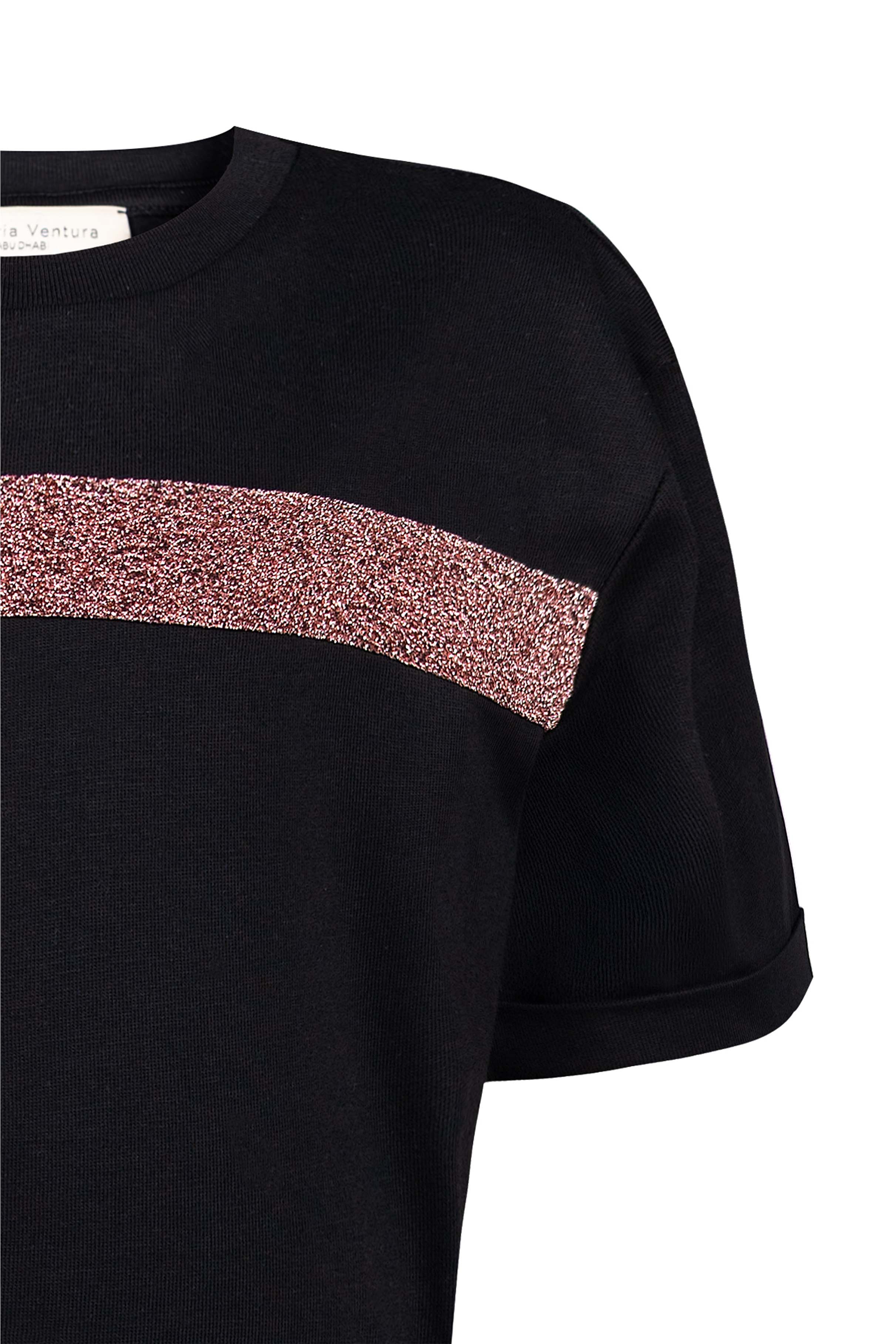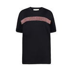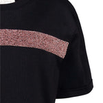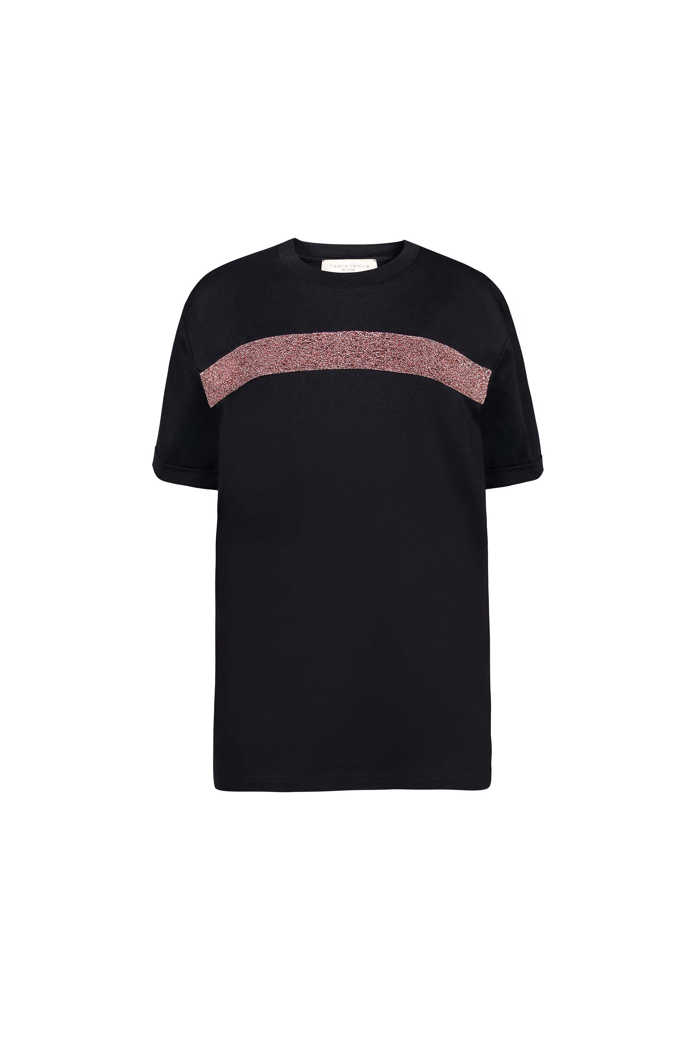 Cotton short sleeved t-shirt adorned with shimmering contrasting strap on the front.