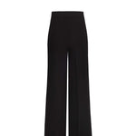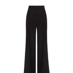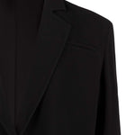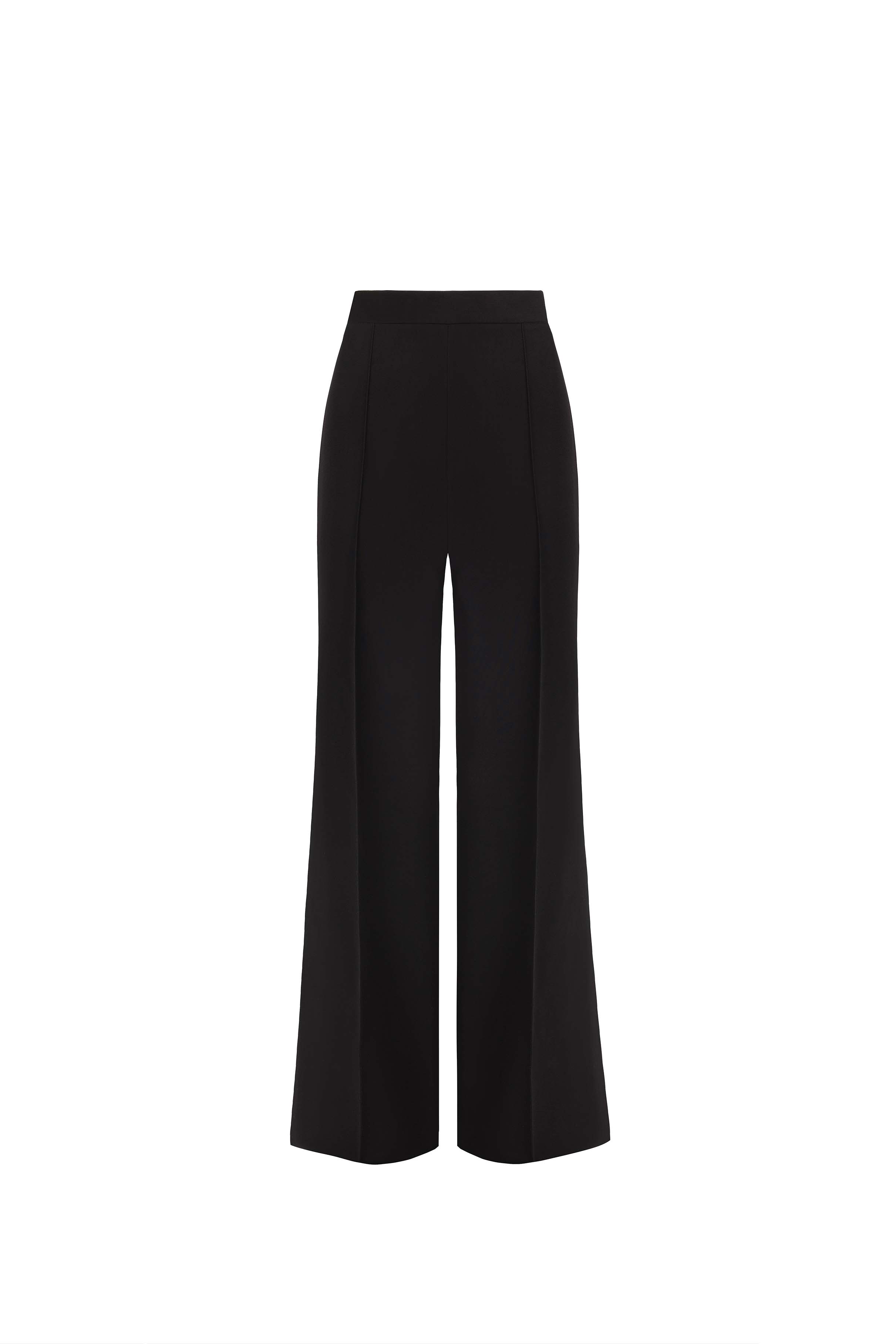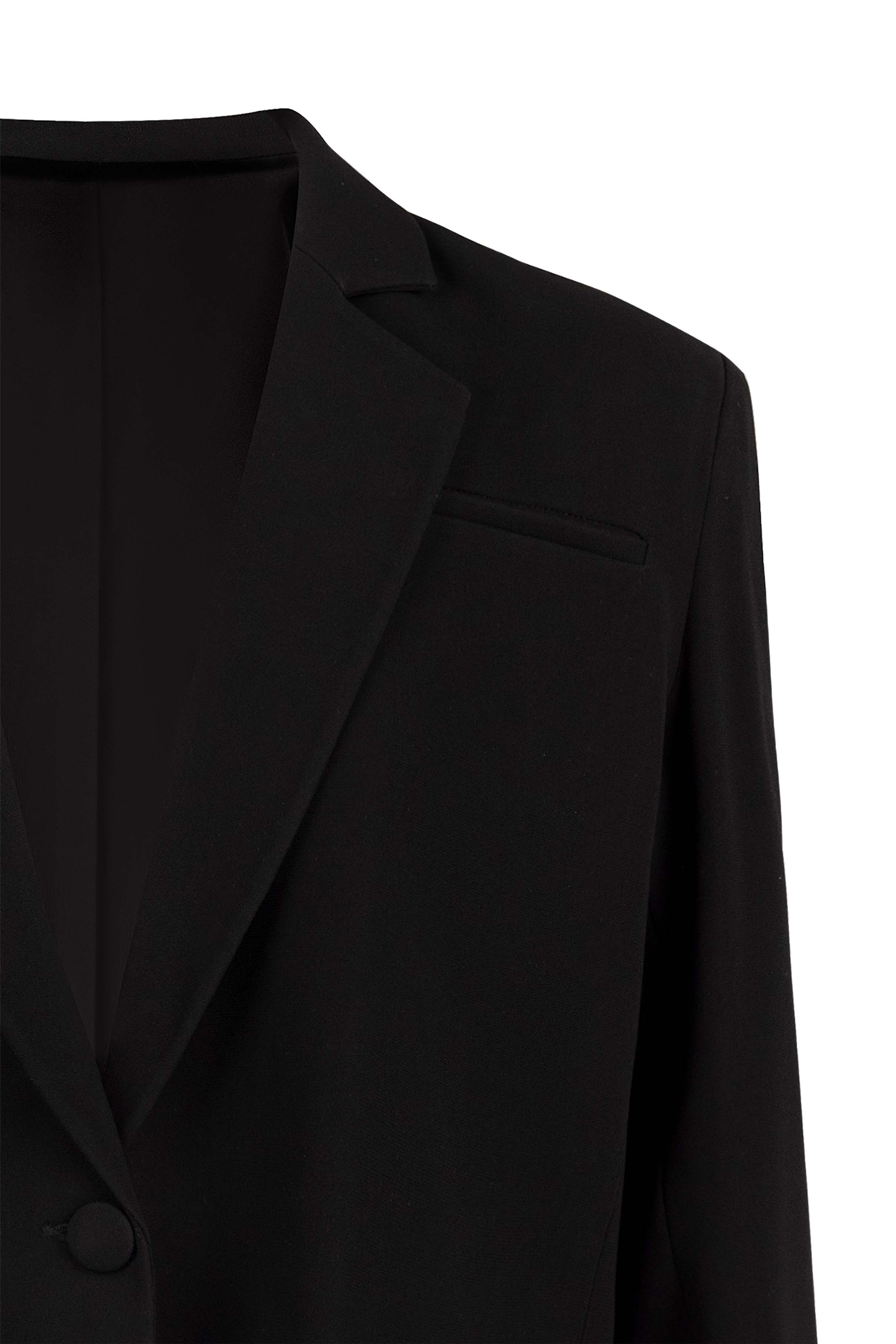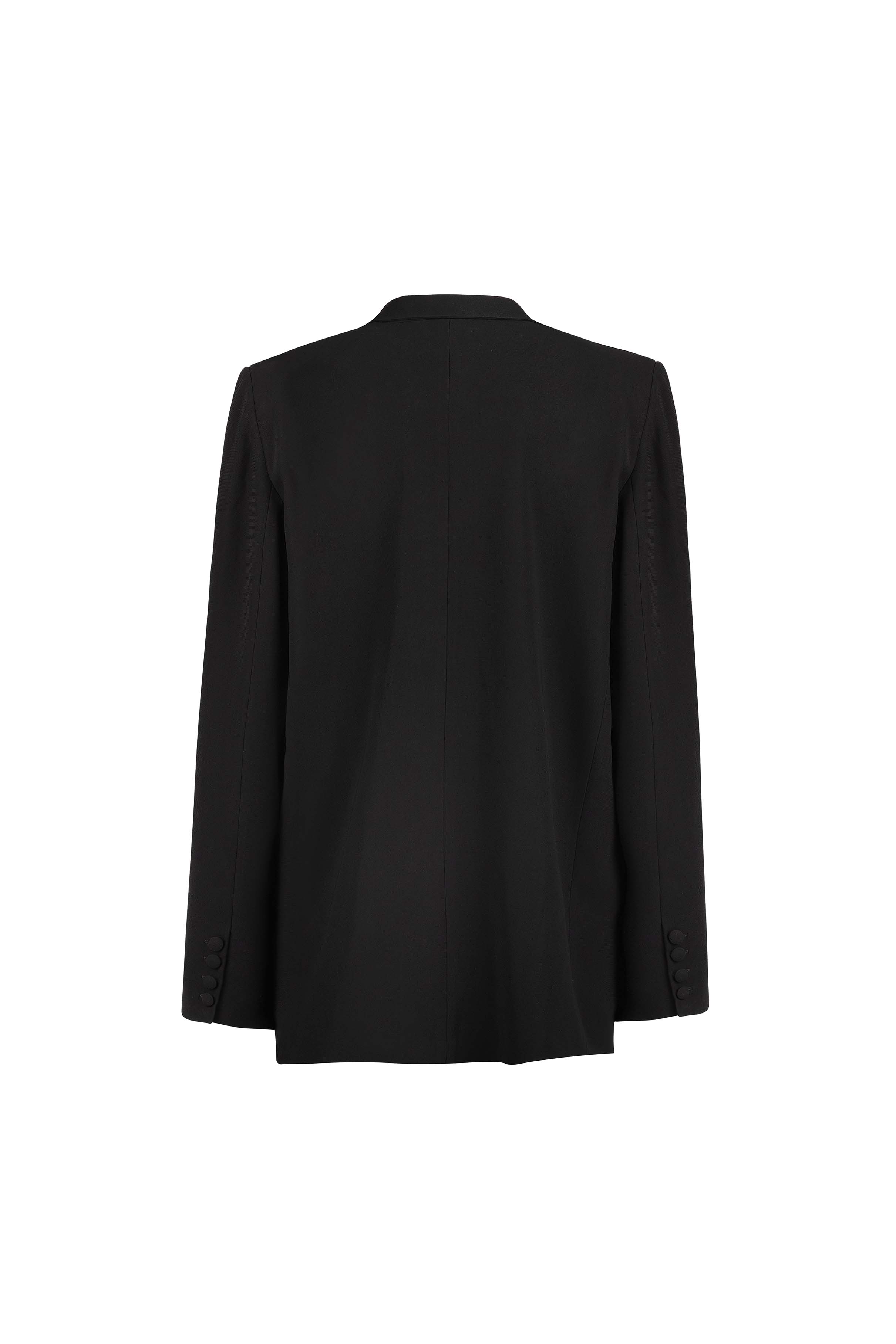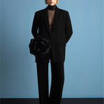Tailored oversized suit, featuring an oversized structured jacket, with a removable 3D crepe and organza flower, paired with wide-leg trousers.
