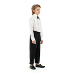 Dress your young gentleman in style with the Regal boy's shirt. This white overlayered shirt from the Regal collection combines classic design with modern details, perfect for formal occasions and smart casual outings.