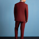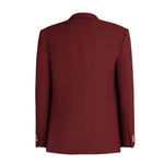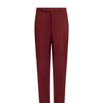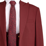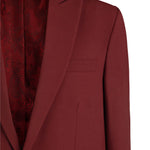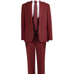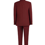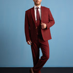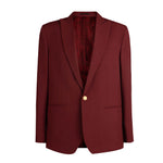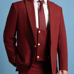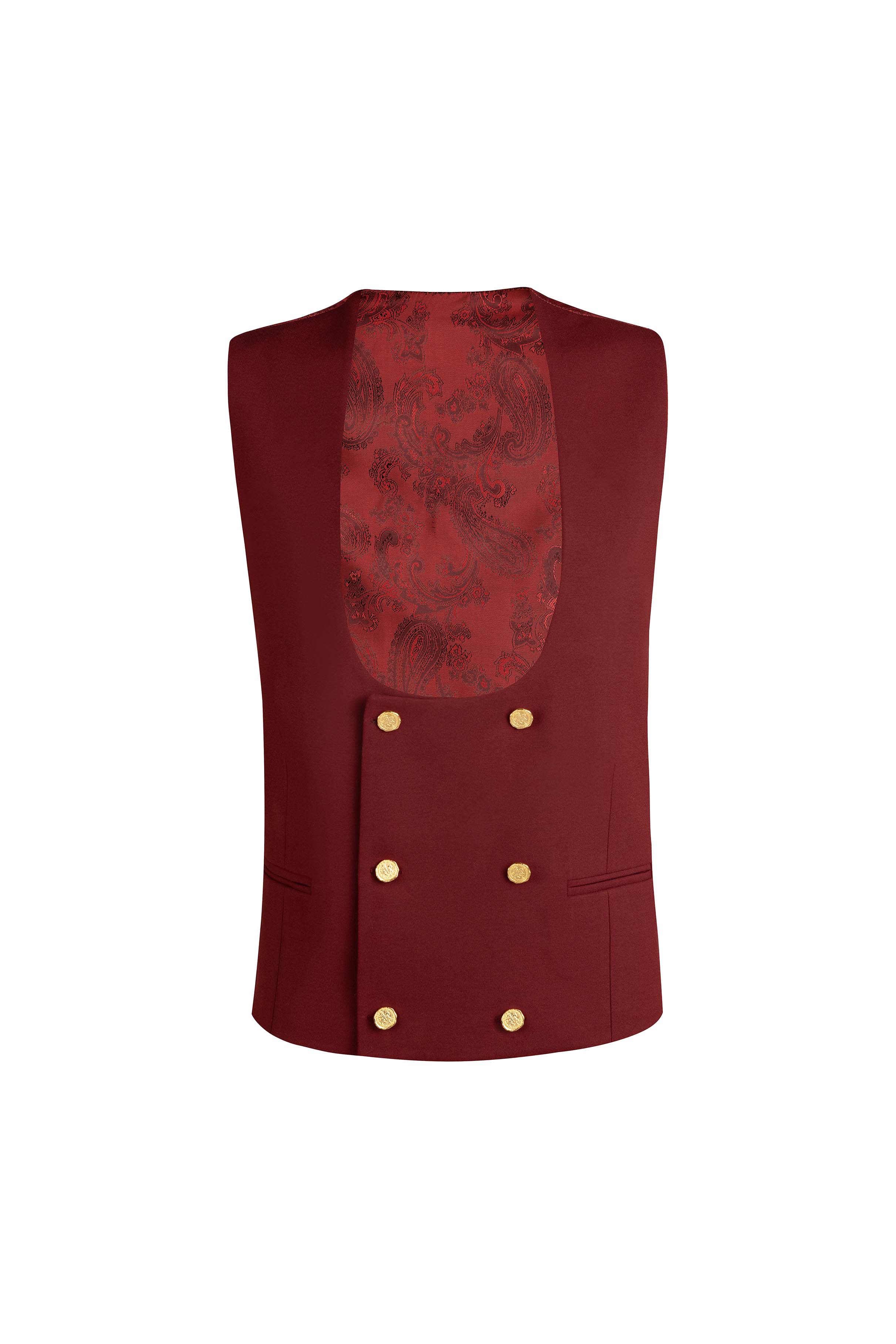 Slim fit blazer in lightweight summer fabric. Notched lapel collar. Long sleeves with buttoned cuffs. Welt pocket at the chest, pockets at the hip, and an inside pocket. Back vents. Front button fastening. Matching trousers with front zip and hook closure, side pockets, and welt pockets at the back. Wide-cut gilet with metallic buttons and scoop neckline.