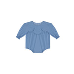 Welcome your little one with the charming comfort of the Soft Sapphire collection’s Blue Loose infant Jumpsuit. This piece is designed with a delightful 3D flower neckline, adding a touch of whimsy to its soft, flowing silhouette.