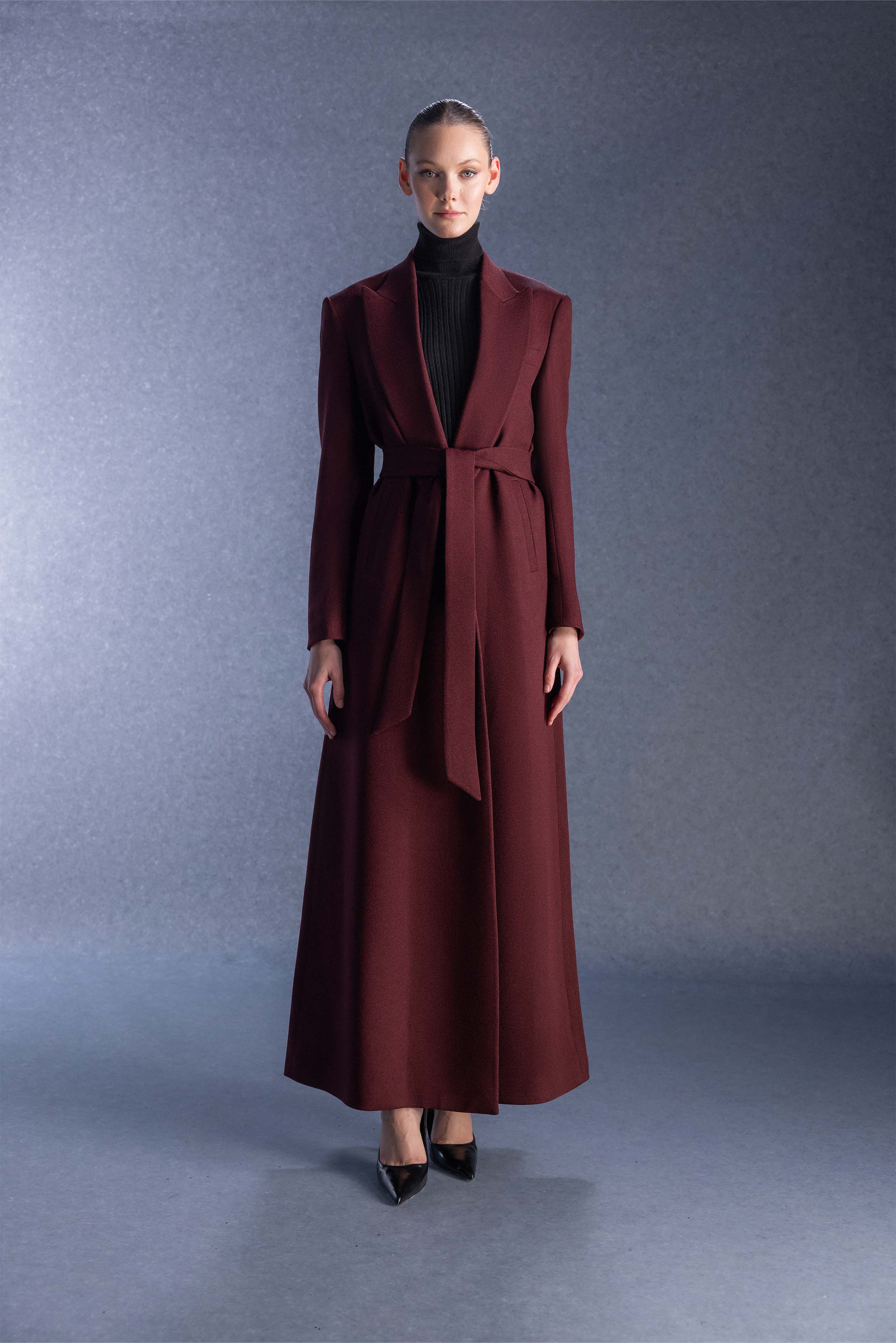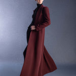An oversized full-length coat designed for a woman's look, featuring voluminous puffy sleeves that add a dramatic and fashionable touch. The relaxed fit and bold silhouette offer both comfort and style, making it a standout piece for cooler weather