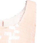 Salmon sequin crop top with zippered back. Fish-scale texture, fitted cut.