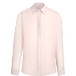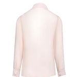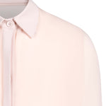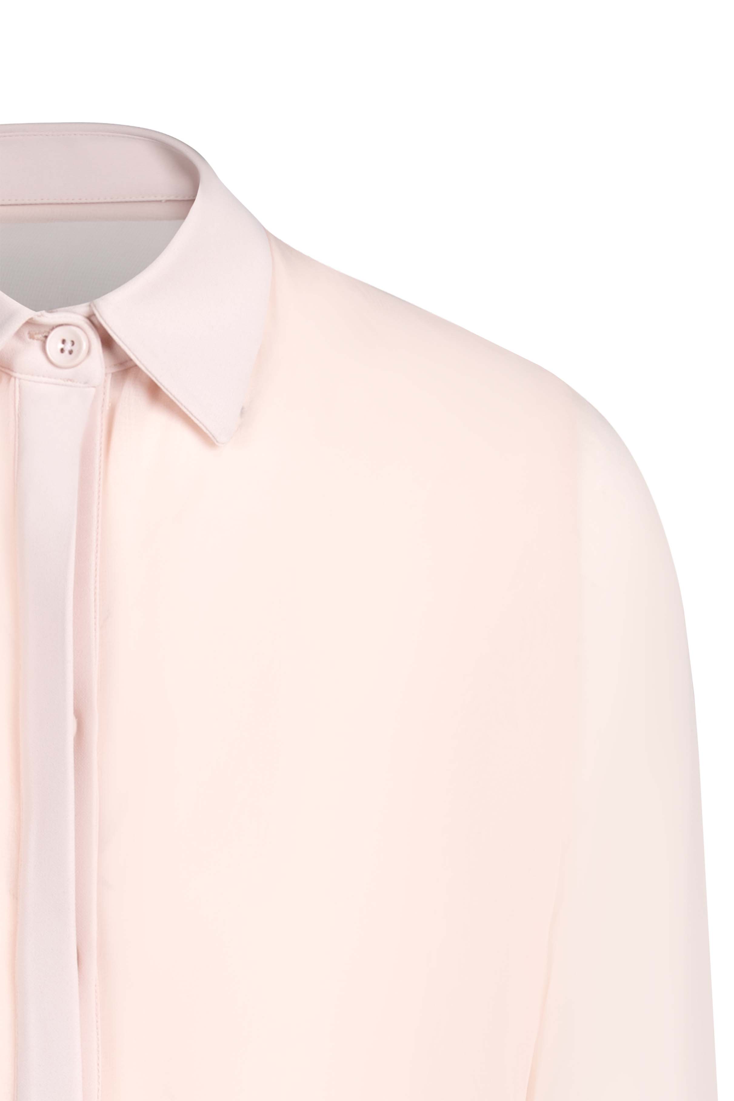 Sheer long-sleeved blouse with shirt collar, hidden placket, and crepe cuffs.